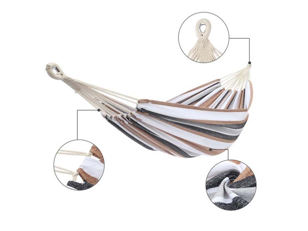Materialen en constructies zijn gekozen voor een lange levensduur: aluminium en staal met anticorrosiebehandeling, hout en kunststof rotan (polyrattan) worden aangevuld met ademende textilene-stof en sneldrogende hoezen. Dankzij deze eigenschappen zijn de producten in deze categorie van duurzame materialen, UV-bestendig en waterbestendig. Ergonomische vormen, gevoerde zittingen en hoofdsteunen, een verstelbare rug- en voetensteun, veilige ophangsystemen met karabiners en positi vergrendeling bieden een ergonomische zithouding en een hoog draagvermogen. Praktische details zoals afneembare hoezen, antislippootjes, wieltjes, stapelbaarheid en een compact inklapmechanisme zorgen voor eenvoudig onderhoud en mobiliteit.