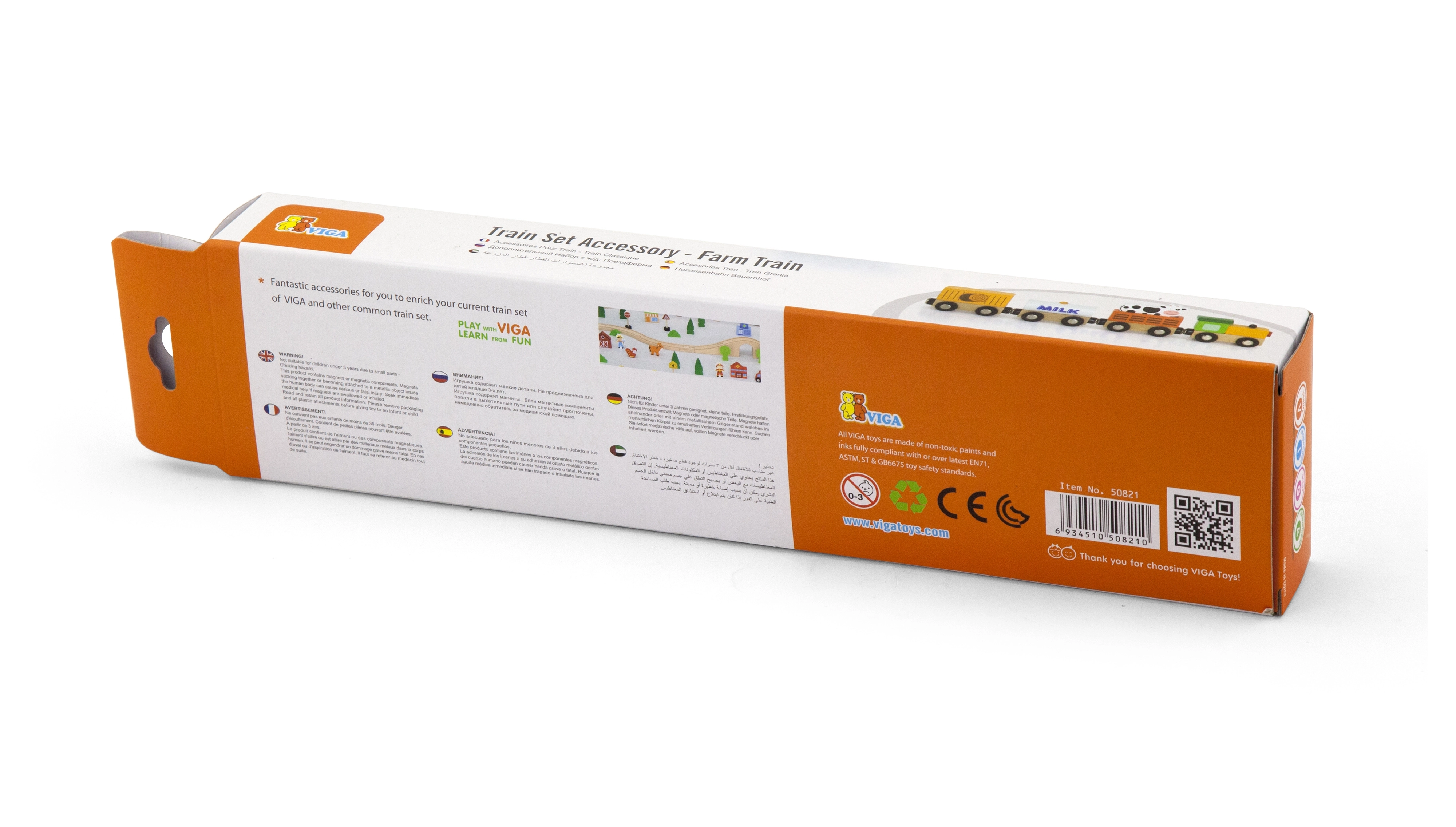 Materialen en afwerking leggen de nadruk op kwaliteit en veiligheid: glad geschuurd hout, duurzame kunststof onderdelen, magnetische koppelingen en stabiele onderstellen voor een soepele rit. Het railsysteem is modulair, compatibel en eenvoudig uit te breiden – houten rails, wissels, bruggen, tunnels, stations en andere accessoires voor een realistische treinbaan ontbreken niet.