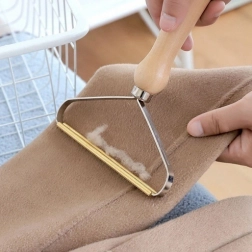 Een elegante en efficiënte helper voor de dagelijkse textielverzorging. Verwijdert pluisjes, haren en losse vezels van verschillende materialen en geeft ze weer een schone en verzorgde uitstraling. Dankzij het ergonomische houten handvat ligt hij prettig in de hand en leidt hij je nauwkeurig in één richting over het oppervlak van de stof.