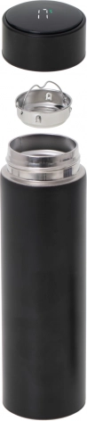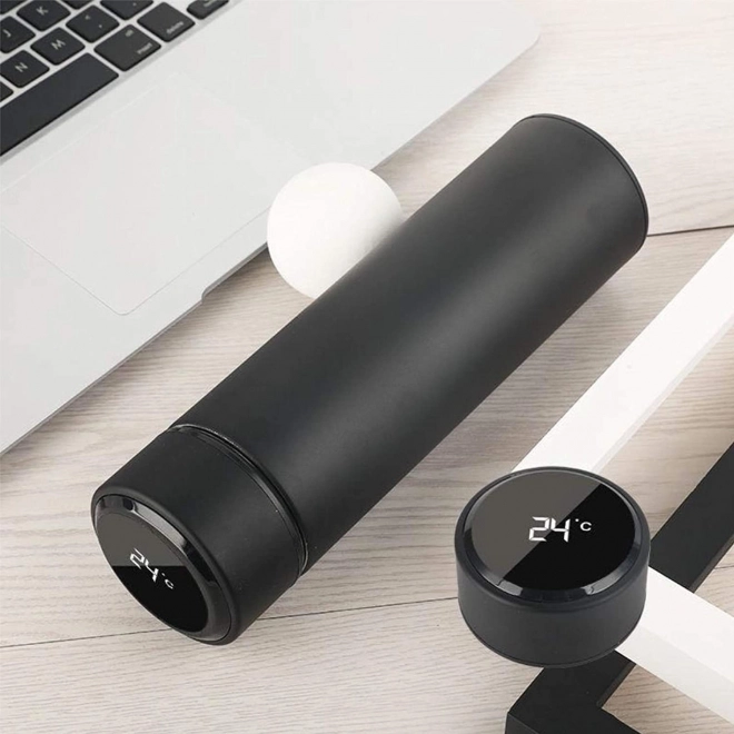 Stijlvolle thermosbeker met aanraakgevoelig LED-temperatuurdisplay voor het comfortabel controleren van je drankje onderweg. Vacuümgeïsoleerde dubbele wanden houden de temperatuur urenlang vast, roestvrij staal is voedselveilig en het fijne zeefje vangt theeblaadjes of koffiedroes op. Inhoud 500 ml, lekdichte dop en minimalistisch zwart design voor dagelijks gebruik in de auto, op kantoor en op reis.