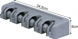 Breng voorgoed orde in huis. Deze wandhouder helpt je gereedschap, schoonmaakspullen en sportuitrusting efficiënt te organiseren. Zelfklemmende houders houden stelen met uiteenlopende diameters stevig vast, terwijl de praktische haakjes dienstdoen voor doeken, handschoenen of kleine accessoires. De compacte breedte past ook in kleinere ruimtes.