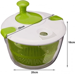 Praktische slacentrifuge van 5 l helpt je snel water te verwijderen van gewassen sla, kruiden of groenten. Eenvoudig handmatig roterend mechanisme, transparante kom en een veilig klikdeksel zorgen voor comfortabel en efficiënt drogen zonder onnodige rommel.