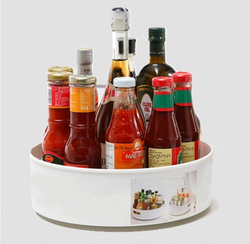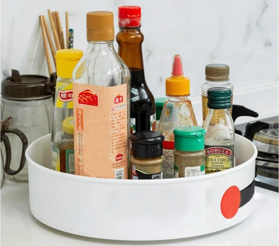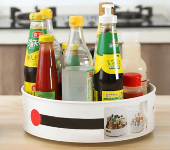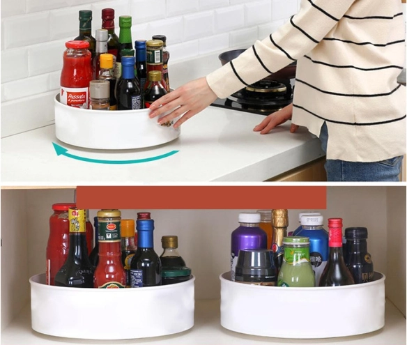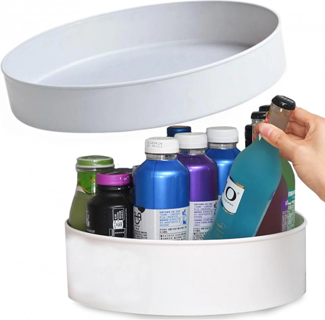 De universele draaibare organizer is een ideale hulp voor elke keuken en badkamer. De compacte schaal met een stabiele draaibasis maakt het gemakkelijk om het gewenste item te vinden en te pakken zonder te grabbelen. Het minimalistische design van duurzaam kunststof past in de meeste interieurs en helpt netheid en overzicht te behouden in kasten en op het werkblad.
