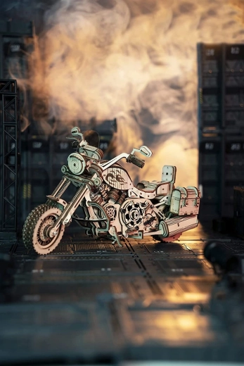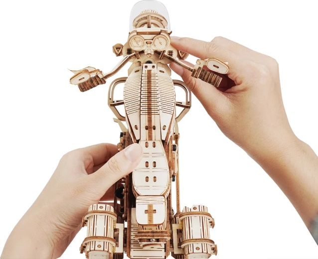 Ontdek het plezier van modelbouw met deze precieze 3D-bouwset van een motorfiets van multiplex. Het model biedt een opwindbare veeraandrijving, functionele besturing, bewegende zuigers en werkende voorvering. Met 420 onderdelen en een gemiddelde moeilijkheidsgraad geniet je 4–5 uur van bouwplezier; na montage kan de motor zelfstandig rijden en valt hij op door zijn decoratieve uitstraling en kleine opbergvakjes bij het zadel.