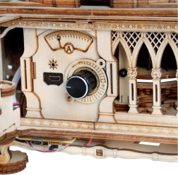De verpakking bevat materiaal voor het assembleren van het model en een vinylplaat met drie melodieën voor een volledige ervaring.