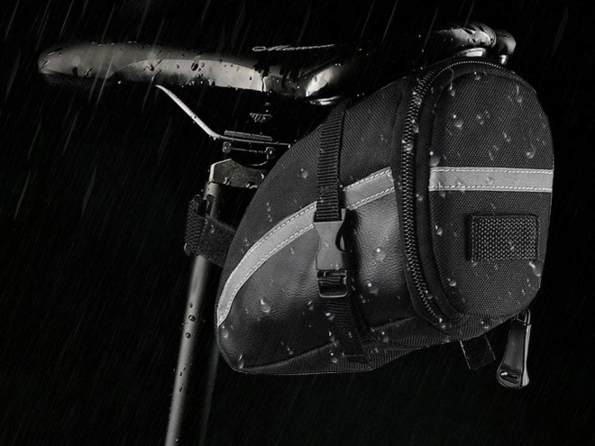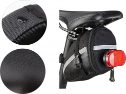 De tas is voorzien van een reflecterende strip voor extra veiligheid en de mogelijkheid om een waarschuwingslicht te bevestigen voor rijden in het donker.