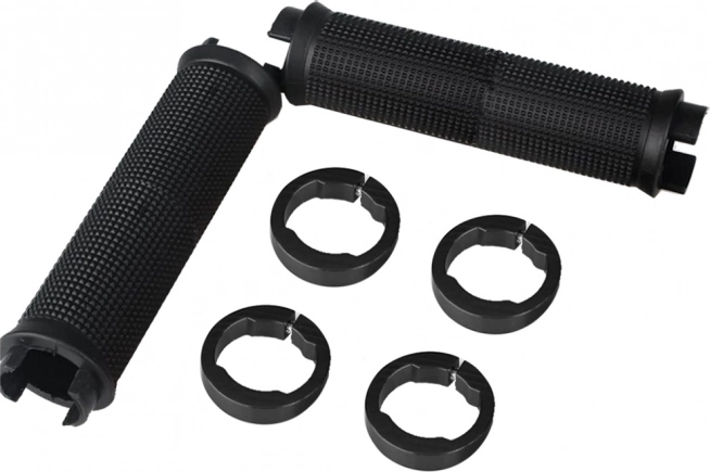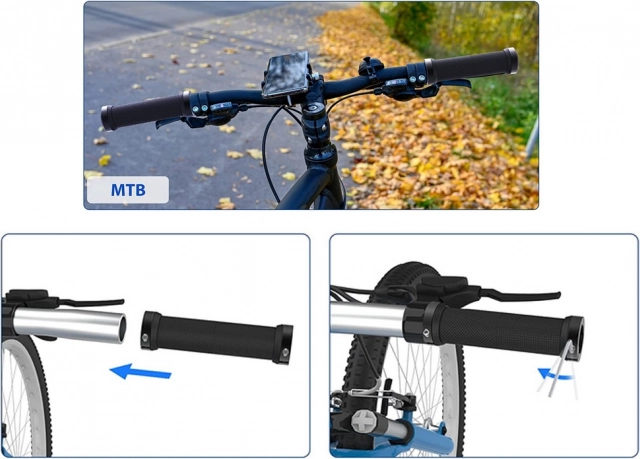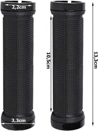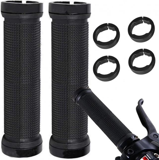 Rubberen handvatten voor fiets zijn gemaakt van hoogwaardige anti-slip rubber die zachtheid en schokdemping biedt. Metalen einddoppen met schroeven zorgen voor een stevige bevestiging en elimineren de mogelijkheid van het wegglijden van de handvatten tijdens het fietsen.