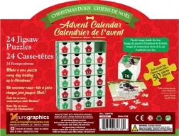 Ontdek elke decemberdag een nieuwe, schattige hondenillustratie in winterse en feestelijke sfeer. Elke vierkante puzzel heeft 50 stukjes en meet na het leggen 12,5 × 12,5 cm – het ideale formaat voor een korte maar leuke puzzelpauze. Aan de achterkant van elk laadje vind je een voorbeeldafbeelding om het leggen te vergemakkelijken.