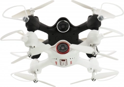 Hij is uitgerust met een 6-assige gyroscoop, waardoor de vlucht zeer stabiel is en het model wendbaarder en behendiger wordt. Bovendien heeft hij een geïntegreerde camera met live videostream naar het display van je telefoon en opname in 640×480p-kwaliteit. Je kunt dus video’s opnemen en foto’s maken van je luchtavonturen! Het model kan uitsluitend met een telefoon worden bediend en je kunt zelfs een route programmeren die het model daarna zelfstandig aflegt. Alles via de mobiele app. Niet alleen bij minder goede lichtomstandigheden zul je het LED-licht waarderen waarmee de Syma X23W is uitgerust. Deze drone bezorgt het hele gezin plezier en dankzij zijn formaat kun je hem overal mee naartoe nemen!