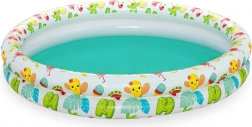 De praktische kinderset biedt alles wat je nodig hebt voor waterpret in de tuin of op vakantie. Het zwembad met een diameter van 122 cm biedt comfortabel plaats aan twee kinderen, die kunnen genieten van veel plezier en verfrissing. Dankzij het tropische design met fruit en dieren wordt elke dag buiten een klein feest.