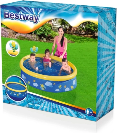 Gun kinderen hun eigen waterkoninkrijk in de tuin. Het BESTWAY kinderzwembadje met bijenmotief is snel gebruiksklaar, eenvoudig te vullen en te legen en is dankzij de opblaasbare rand prettig en veilig aan te raken voor kleine zwemmers. De grappige sproeier in de vorm van een bij verandert gewoon gespetter in vrolijk vermaak.