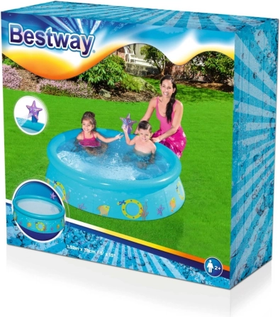 Creëer voor kinderen hun eigen waterwereld met het kleurrijke BESTWAY-zwembad met vissenmotief. De praktische stervormige sproeier sluit je eenvoudig aan op de tuinslang en verandert gewoon spelen in een verfrissende zomerervaring. De opblaasbare bovenrand verhoogt de stabiliteit en het comfort tijdens het spelen.