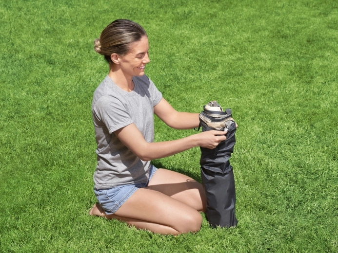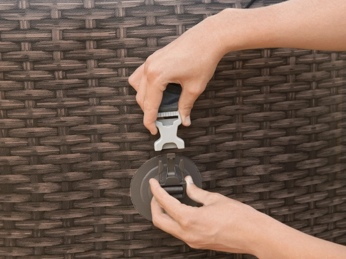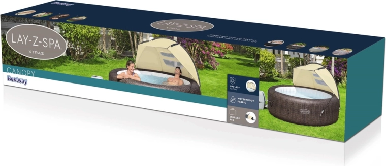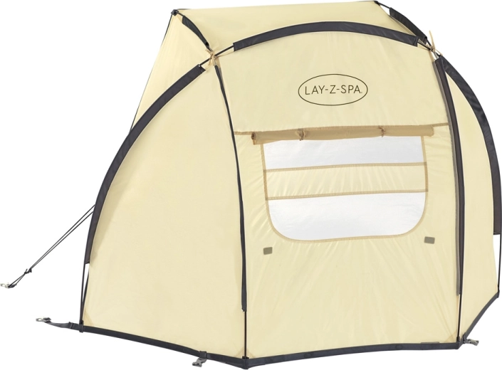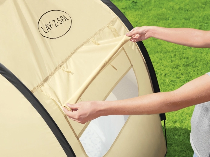Deze schuilplek voor jacuzzi's biedt geweldige bescherming en privacy tijdens uw ontspanning in de tuin. Met ventilerende ramen die vrije luchtstroom garanderen en eenvoudige montage, is het een ideale aanvulling voor alle soorten Bestway jacuzzi's, behalve de modellen St. Lucia en Vancouver.