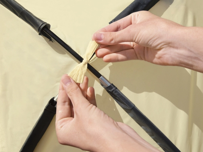 Snelle en eenvoudige montage, zodat u de schuilplek snel kunt opzetten en kunt genieten van ontspanning.