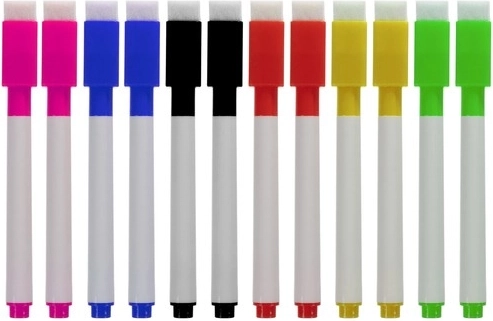 Stiften die perfect werken als markers voor een magnetisch bord. Een onbetwist voordeel van deze oplossing is dat aantekeningen die op het bord zijn geschreven eenvoudig kunnen worden verwijderd met een droge doek of met het sponsje in de dop.