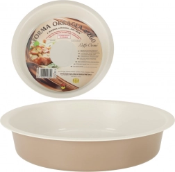 Deze ronde bakvorm met gladde zijkanten en bodem is een geweldige keuze voor uw keukenbehoeften. Ontworpen voor gebruik in gas- en elektrische ovens, maar niet geschikt voor de vaatwasser. De vorm heeft een modern ontwerp in de kleur van koffie met melk.