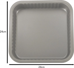 De niet-klevende bakvorm met afmetingen 24x24 cm is geschikt voor gas- en elektrische ovens. Hij is gemaakt van hoogwaardige laag-koolstofstaal met antiaanbaklaag, waardoor je gerechten gemakkelijk uit de vorm komen. Geschikt voor het bereiden van taarten, pizza’s en gegratineerde gerechten.