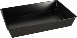 Universele bakplaat met een getextureerde bodem en antiaanbaklaag voor gelijkmatige garing en eenvoudig lossen van gerechten. Versterkte hoeken met draad zorgen voor extra stabiliteit, terwijl de gladde wanden het reinigen vergemakkelijken. Ideaal voor gas- en elektrische ovens, voor zowel zoet als hartig bakwerk.
