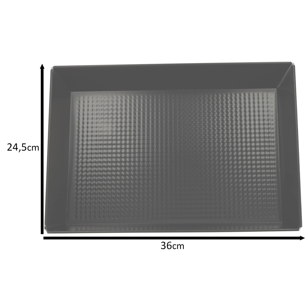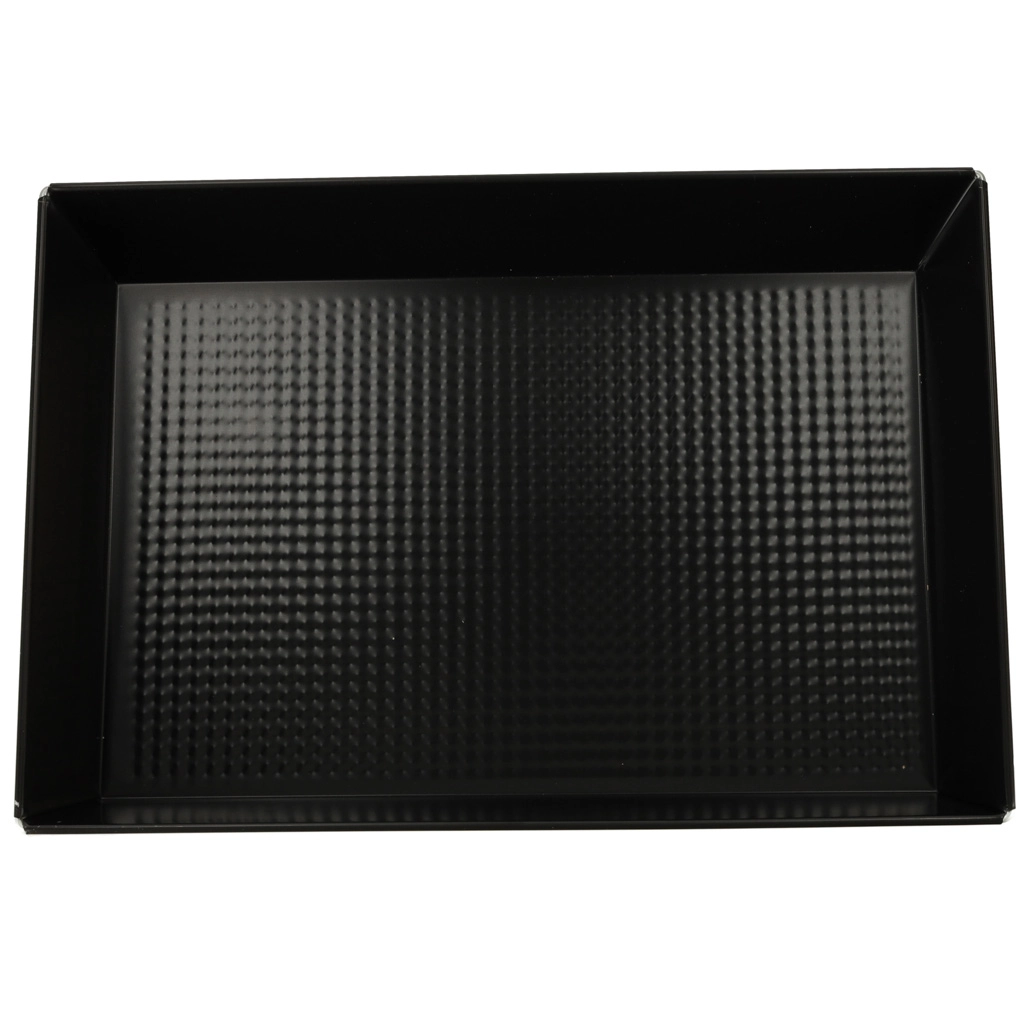 Praktische zwarte bakplaat van legering van laag-koolstofstaal met een antiaanbak “non‑stick” laag – een betrouwbare keuze voor dagelijks bakken. De getextureerde bodem bevordert de warmtecircultie en beperkt aanbakken, zodat zowel gebak als vlees gelijkmatig garen en gemakkelijk uit de vorm komen.