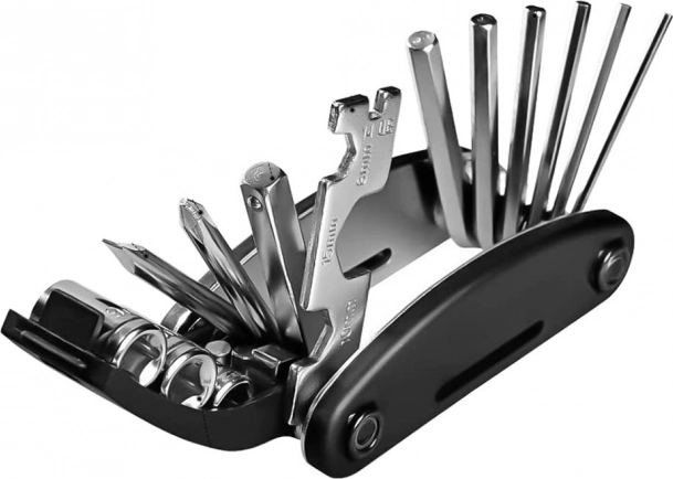 Alles wat je nodig hebt op één plek: inbussleutels, schroevendraaiers, doppen en een spaaksleutel. Ideaal voor snelle reparaties en het afstellen van je fiets, waar je ook bent.