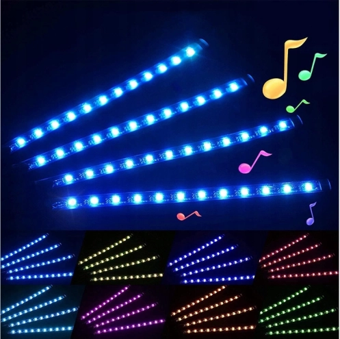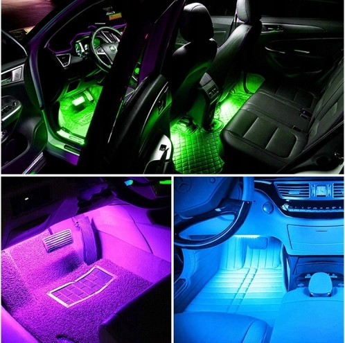 Verhoog de sfeer in je auto met slimme LED ambient verlichting. Vier flexibele en waterdichte LED-strips met SMD 5050 RGB-technologie laten je eenvoudig kleuren, helderheid en effecten aanpassen. Met de afstandsbediening wissel je tussen 8 vaste kleuren, 4 sprongmodi en muziekmodi die op het ritme reageren.