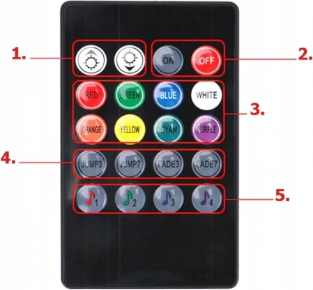 Afstandsbediening voor kleur-, helderheids- en moduswissel, snel aan/uit direct op de sigarettenaanstekerstekker. Het systeem onthoudt de laatste instelling.