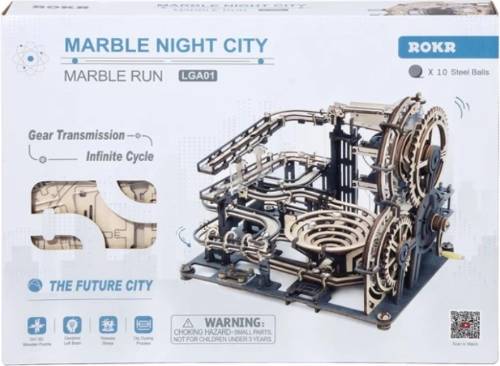 ROKR Marble Night City is een verbluffend 3D bouwmodel van een knikkerbaan dat plezier en educatie combineert. Dit model bestaat uit 294 nauwkeurig uitgesneden onderdelen die een complexe baan vormen met verschillende obstakels en handmatig aangedreven mechanica door aan een slinger te draaien. De verpakking bevat een complete handleiding die je door het bouwproces leidt.