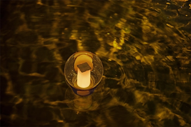 - Drijvende doseerder voor zwembadchemicaliën met zonne-LED-licht