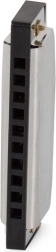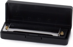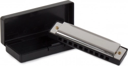 Technische specificaties: onder andere materiaal metaal en plastic, mondharmonica lengte 10,5 cm, kleuren zwart en zilver, gestemd in C majeur en met tien kanalen. Deze mondharmonica is een perfect cadeau voor elke muziekliefhebber.