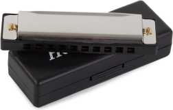 De lichte metalen constructie van de mondharmonica zorgt voor uitstekende draagbaarheid en gemakkelijke opslag dankzij de beschermende plastic hoes.