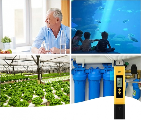 De pH-meter biedt nauwkeurige pH-metingen in het bereik van 0,0 - 14,0 pH met een resolutie van 0,01. Het is het ideale instrument om de kwaliteit van water en andere vloeistoffen te waarborgen.