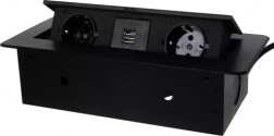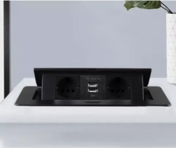 Krijg een nette en veilige toegang tot stroom precies waar je die nodig hebt. Deze inbouw-stekkerdoos combineert 2 netstopcontacten (Schuko) en 2 USB‑poorten 5V/2,1 A in een compacte behuizing die elegant in het tafel- of werkblad verdwijnt. Na een druk op de knop schuift het paneel soepel boven het oppervlak uit; na gebruik laat je het eenvoudig weer zakken.