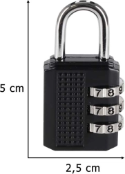 Betrouwbaar reisslot met drie cijferwieltjes, ideaal om ritsen van koffers, rugzakken, lockers en kleinere kastjes te beveiligen. De standaardcode is 000 en kan in een oogwenk worden gewijzigd naar je eigen combinatie. Dankzij de compacte afmetingen en het lage gewicht past het gemakkelijk in je broekzak of handbagage.