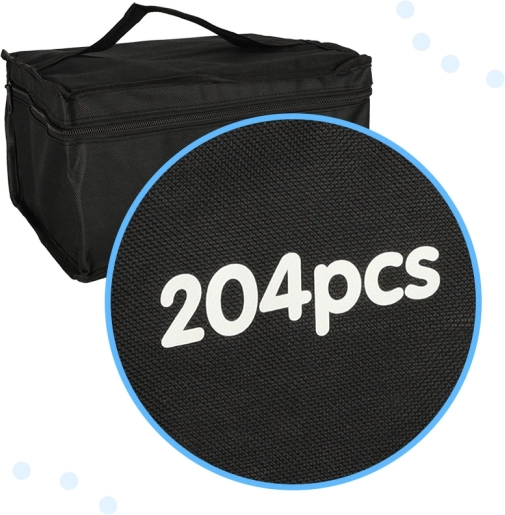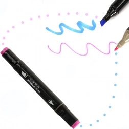 Elke marker heeft twee punten – een brede voor snel inkleuren van grotere vlakken en een fijne voor precieze lijnen en details. De praktische standaard houdt kleuren binnen handbereik en overzichtelijk, terwijl het etui met rits het meenemen van de hele set vergemakkelijkt.