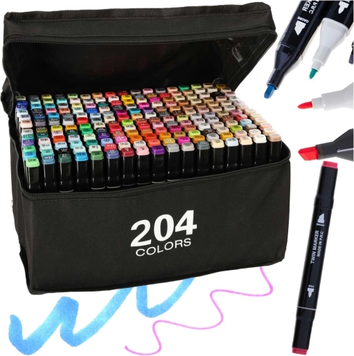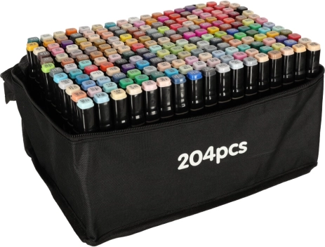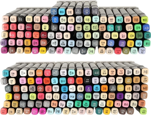 Met het uitgebreide palet van 204 tinten heb je alles voor tekenen, schetsen, schaduwen en inkleuren. De alcoholinkt mengt soepel, maakt eenvoudig blenden mogelijk en is kleurecht na droging, zodat hij niet uitveegt.