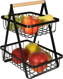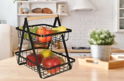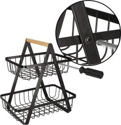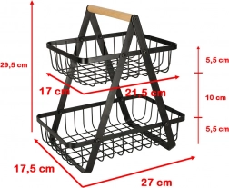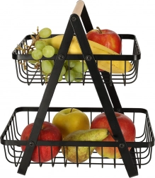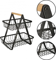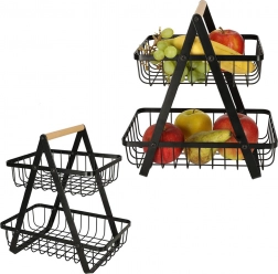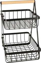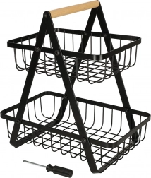 De minimalistische tweelaagse mand is ideaal voor georganiseerde en esthetische opslag van fruit, groenten of brood. De zwarte metalen afwerking past in zowel moderne als klassieke interieurs en het stabiele A‑frame biedt zekerheid bij dagelijks gebruik.