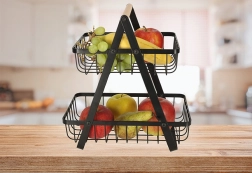 Twee niveaus bieden meer ruimte voor fruit en groenten, terwijl ze minimale plaats innemen op het werkblad.