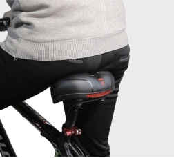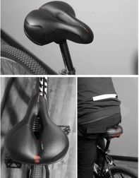 De reflecterende strip verhoogt de zichtbaarheid na zonsondergang en de meegeleverde waterdichte hoes houdt het zadel droog in de regen.