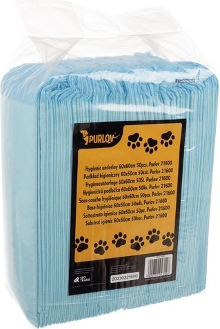 Wegwerp absorberende onderleggers PurLuv zijn ontworpen voor vrijwel elke huisdier, zoals honden, katten en konijnen. Hun vermogen om tot 200 ml vloeistof te absorberen zorgt ervoor dat het oppervlak onder de onderlegger droog blijft. De onderleggers hebben vier afgedichte randen beschermend tegen lekken en een patroon aan de binnenkant dat zorgt voor hoge absorptiecapaciteit.