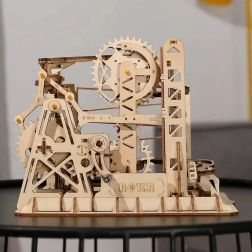 Ontdek de magie van mechanica met de houten ROKR Climber knikkerbaan – een precieze 3D-puzzel die de schoonheid van engineering, STEM-leren en plezier voor het hele gezin verbindt. Na het monteren hoef je alleen aan de hendel te draaien en te kijken hoe stalen knikkers razen over spiraalhellingen, langs een torenverdeler en liften in een complex tandwielsysteem.