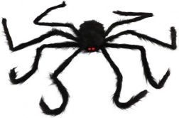 Deze reusachtige zwarte pluchen spin trekt onmiddellijk de aandacht en zorgt voor precies de juiste dosis spanning. Ideaal voor het decoreren van entrees, ramen, planken of feesttafels, en dankzij zijn formaat wordt hij de blikvanger van elke Halloweenversiering.