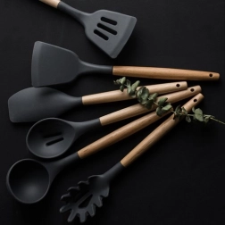 Verrijk uw keuken met onze siliconen set keukengereedschappen. Deze set is ideaal voor veilig koken op teflon of andere antiaanbaklaag oppervlakken. Siliconen weerstaan hoge temperaturen tot 230 graden en beschadigen het oppervlak van uw pannen en potten niet.