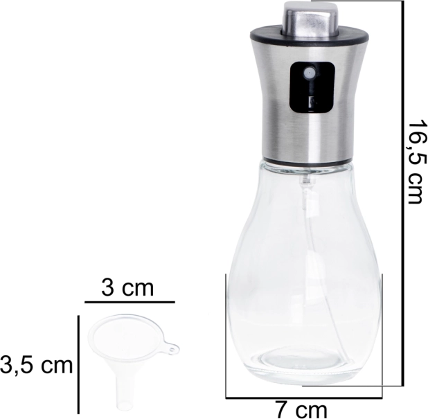 Met deze praktische olie spray wordt koken een plezier! Niet alleen vergemakkelijkt het de bereiding van gerechten door een gelijkmatige verdeling van een kleine hoeveelheid vloeistof, maar het is ook ideaal voor het op smaak brengen van gerechten zoals salades, marinades of gegrild vlees. Gemaakt van duurzaam glas en metaal, deze 200 ml spray is niet alleen stijlvol, maar ook zeer functioneel.