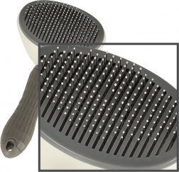 Deze borstel is uitgerust met flexibele tanden met afgeronde uiteinden, die een zachte massage geven en vriendelijk zijn voor de huid. De ergonomische greep maakt langdurig gebruik zonder vermoeidheid mogelijk. Kies het beste voor je hond of kat en kies een borstel die hen comfortabele en effectieve verzorging biedt.
