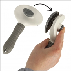 Regelmatig kammen van je huisdier zorgt niet alleen voor de netheid van je huis, maar ook voor de gezondheid van de vacht en huid. De borstel laat de vacht glad en glanzend achter dankzij de natuurlijke verdeling van oliën over de gehele lengte van de vacht. Het zelfreinigende mechanisme zorgt ervoor dat je na het kammen de haren niet moeizaam hoeft te verwijderen. Druk gewoon op de knop en de vacht laat gemakkelijk los van de borstel.