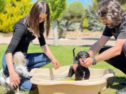 Dit ruime huisdierenzwembad is ideaal voor een hygiënisch bad en zomerse afkoeling in de tuin. De lichte maar stevige constructie met materiaal verrijkt met amandelschillen zorgt voor een langere levensduur en een kleinere ecologische voetafdruk. De water- en UV-bestendige decoratie is aangebracht met IML-technologie, waardoor deze niet afbladdert of vervaagt.