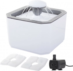 De automatische fontein is ontworpen om de hydratatie van uw huisdieren te verbeteren. Het is uitgerust met vervangbare filters met actieve kool die water zuiveren van onzuiverheden en het verrijken met essentible mineralen. De fontein verwijdert daarnaast haren, voedselresten en voorkomt kalkaanslag.