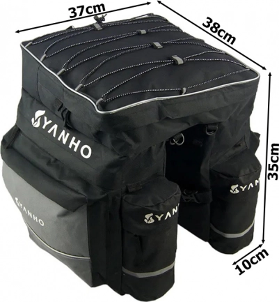 Grote multifunctionele fietstas bedoeld voor bevestiging op de bagagedrager van de fiets, is de ideale keuze voor lange fietstochten. Praktisch en ruim, biedt voldoende ruimte voor kleding, kleinigheden en voedsel. Bovendien is er een regenhoes toegevoegd die de inhoud tegen regen beschermt.