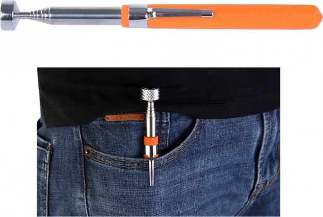 Dankzij de krachtige magneet trekt hij betrouwbaar schroeven, bouten en andere kleine metalen onderdelen aan. De anti-slip oranje handgreep verhoogt het comfort en de zekerheid tijdens het werken, terwijl de clip voor de broekzak het dagelijks meenemen vergemakkelijkt.