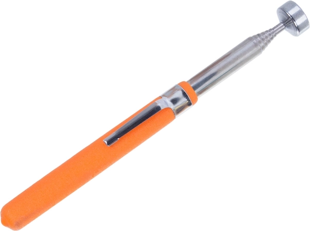 Deze telescopische magnetische oppikker is een ideale helper voor werkplaats, service en huishouden. Hiermee kunt u eenvoudig metalen voorwerpen oppakken uit smalle kieren, onder meubels of in de motorruimte. Het compacte “pen”-design past in de broekzak, maar biedt toch een bereik tot 83,5 cm.